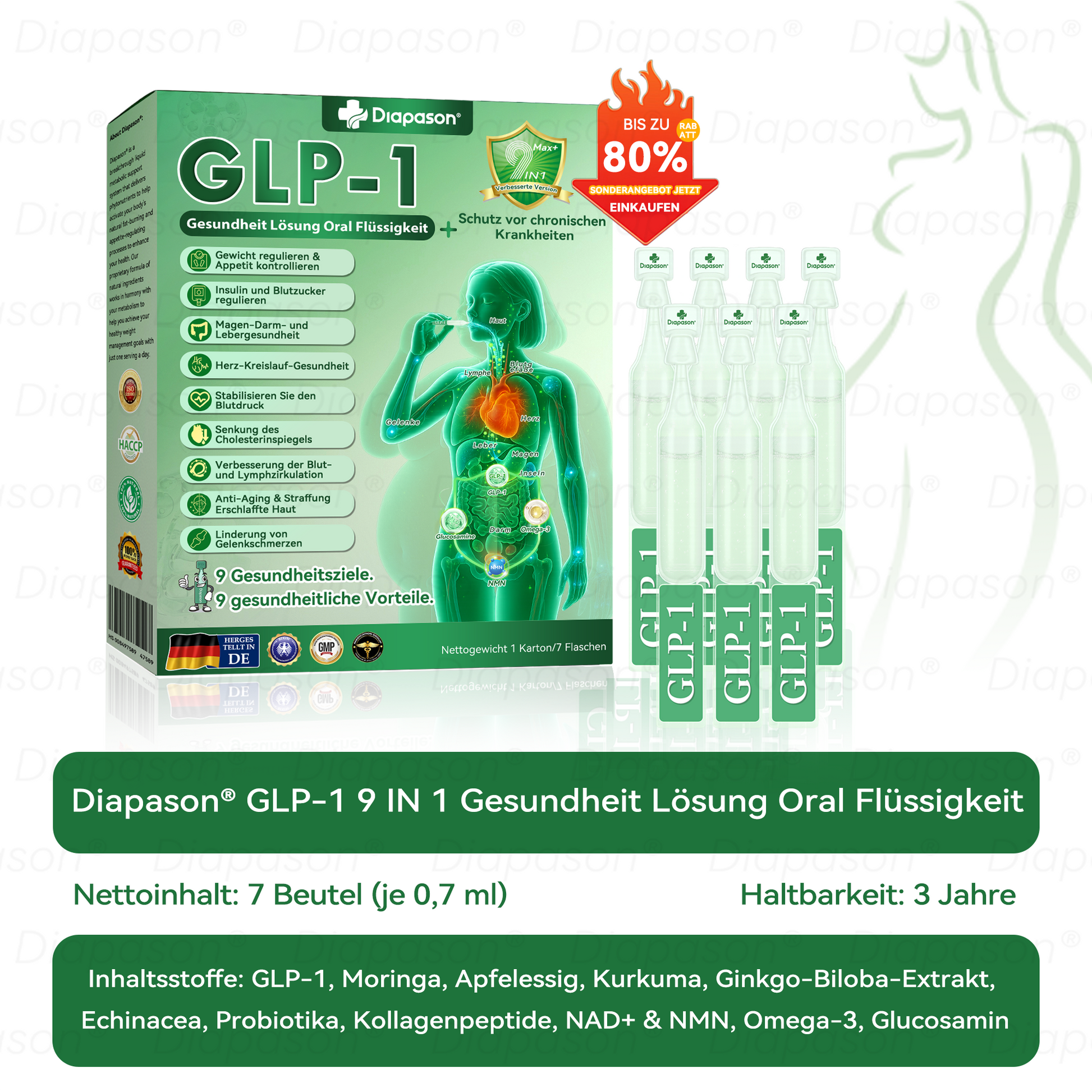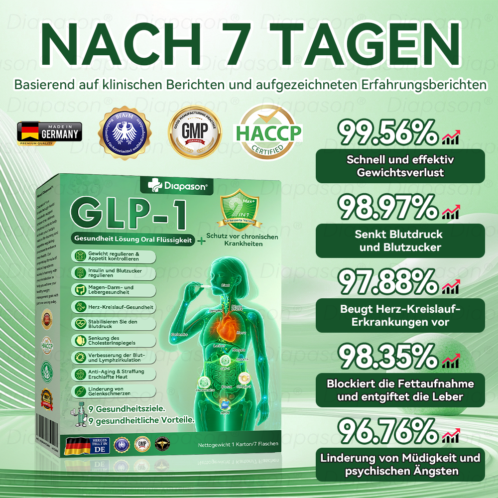 Klinisch von Endokrinologen getestet, kann die Aktivierung von ๐๐ข๐๐ฉ๐๐ฌ๐จ๐งยฎ GLP-1 9 IN 1 Gesundheit Lรถsung Oral Flรผssigkeitย ย und andere Gesundheitsprobleme innerhalb von nur 7 Tagen deutlich verbessern.
