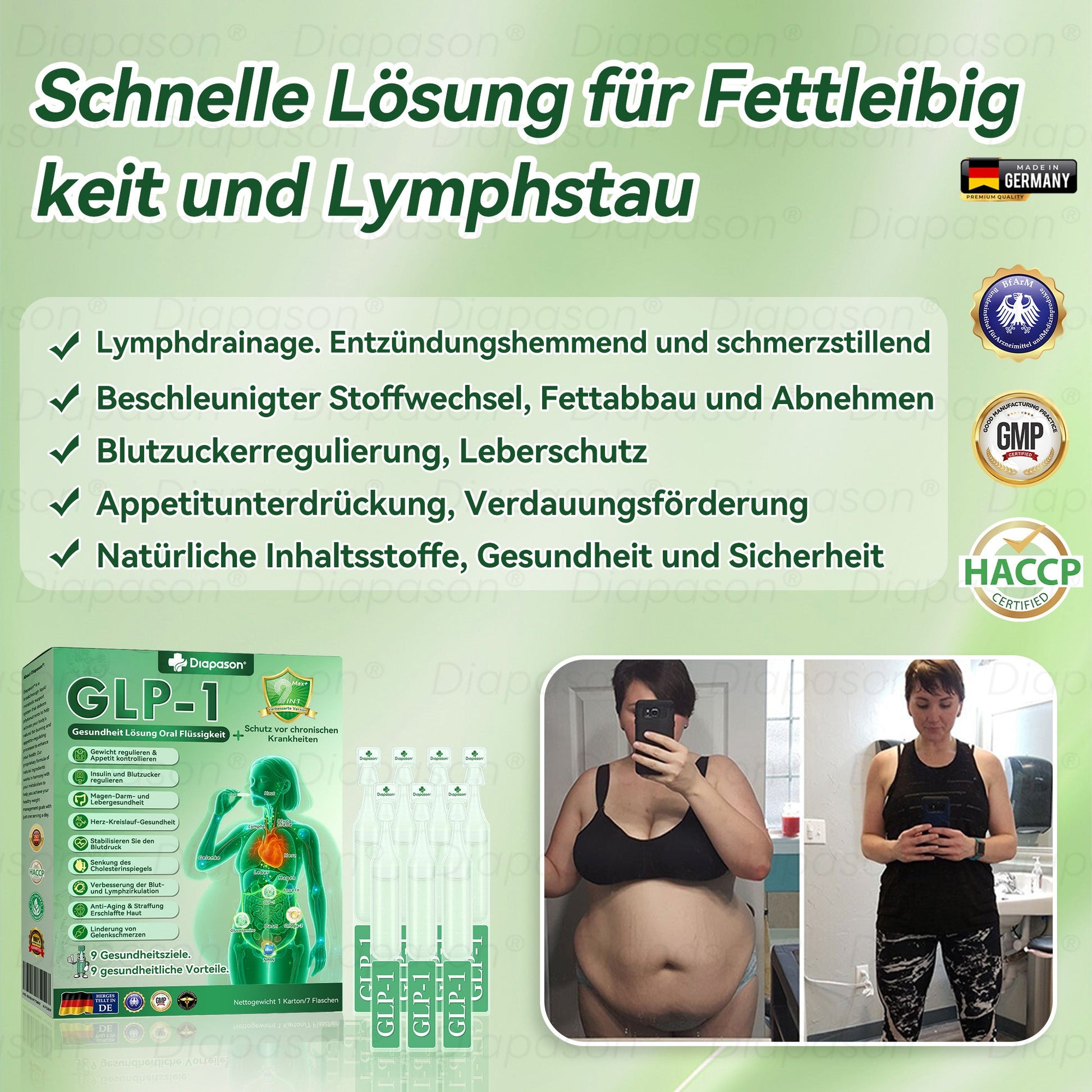 โIch wollte schon immer eine perfekte Figur haben, aber aufgrund eines angeborenen Herzfehlers ist langes Training keine Option fรผr mich, was zu Fettansammlungen fรผhrte und es schwieriger machte, meine Ziele zu erreichen. Ich habe alle mรถglichen Methoden ausprobiert, aber nichts hat funktioniert. Dann empfahl mir ein Freund Diapasonยฎ GLP-1 9 IN 1 Gesundheit Lรถsung Oral Flรผssigkeit, und ich beschloss, es zu probieren. Ich kann Ihnen sagen, dass dieses natรผrliche Oral Liquid die Dinge fรผr mich vรถllig verรคndert hat. Ich spรผrte, wie mein Stoffwechsel in Schwung kam und mein Energielevel in die Hรถhe schnellte! Nach nur 2-3 Wochen Einnahme habe ich abgenommen, fรผhle mich wie neugeboren, und vor allem haben sich mein Blutdruck und mein Cholesterinspiegel verbessert, was gut fรผr mein Herz ist. Wenn es Ihnen wie mir geht und Sie keinen intensiven Sport treiben kรถnnen, aber trotzdem abnehmen wollen, empfehle ich Ihnen dringend, dies auszuprobieren. Es wird Ihr Leben verรคndern, so wie es meines verรคndert hat!โ-ย Lukas Schmidt, DE